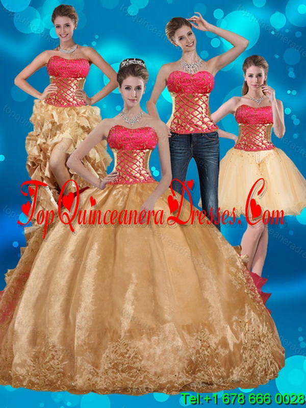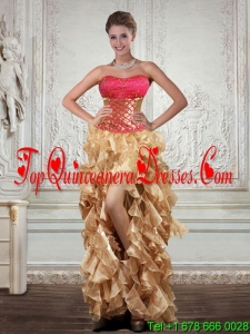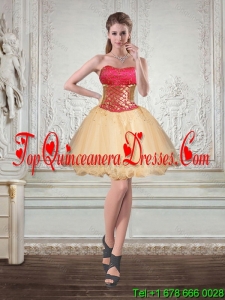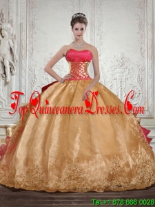 2015 Gold Strapless Quince Dress with Beading and Embroidery