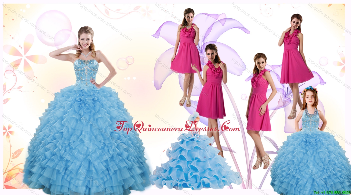 2015 Gorgeous Ruffles and Beading Quinceanera Dress and Hot Pink Short Dama Dresses and Cute Halter Top Little Girl Dress