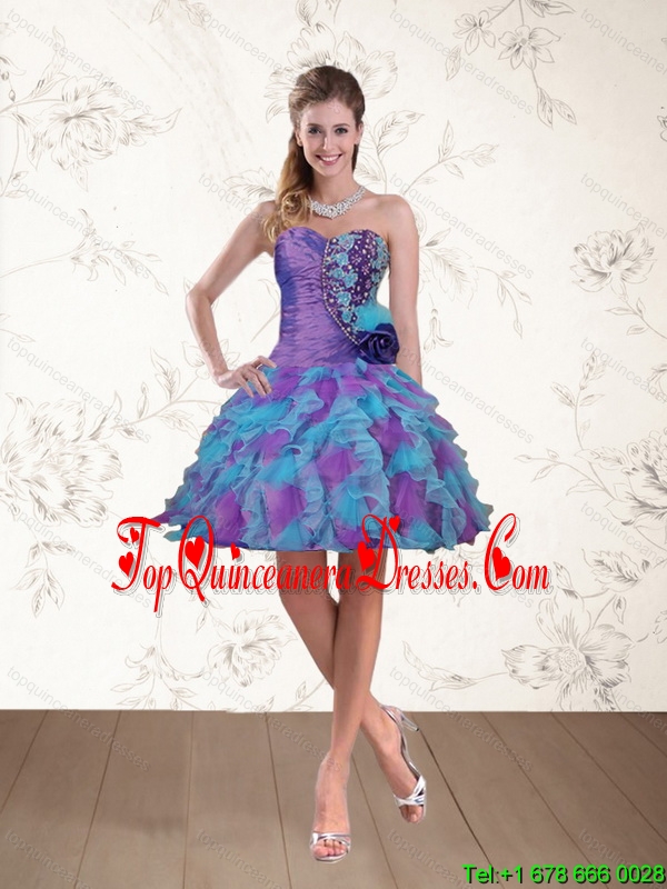 2015 Gorgeous Spring Sweetheart Beaded Multi Color Dama Dresses with Hand Made Flower