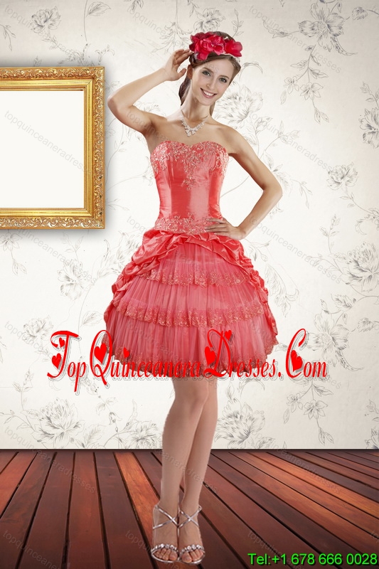 2015 Gorgeous Strapless Coral Red Dama Dress with Ruffled Layers