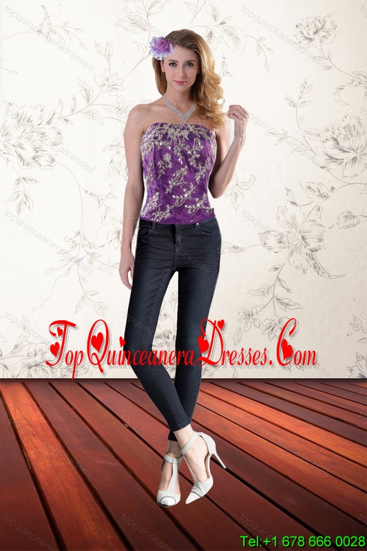 2015 Hot Seller Purple Strapless Corset with Appliques