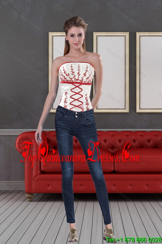 2015 Impressive White Strapless Corset With Embroidery