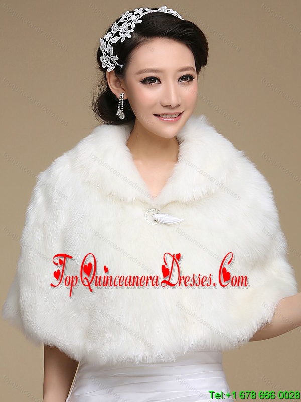 2015 Ivory Faux Fur Shawl With Button Front Closure