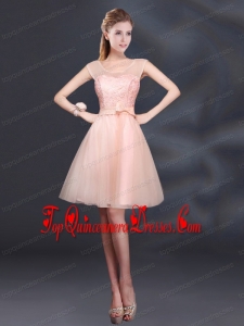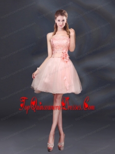 2015 Lace Up Organza Dama Dress with A Line