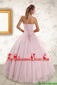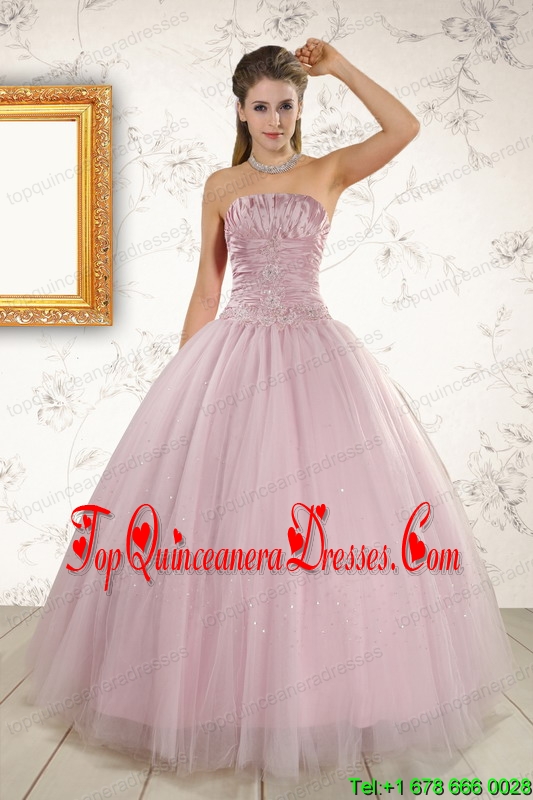 2015 Light Pink Strapless Perfect Sweet 16 Dresses with Appliques