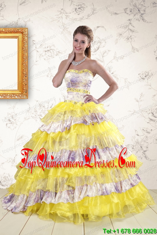 2015 Luxurious Printed and Ruffles Multi-color Quinceanera Dresses