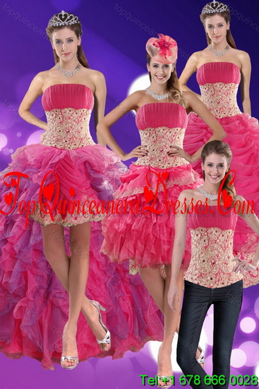 2015 Modern Beading and Lace Quinceanera Dresses in Hot Pink