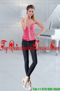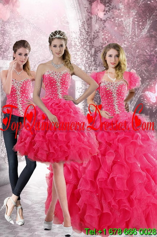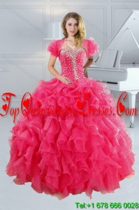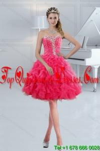 2015 Modern Hot Pink Sweetheart Sweet 15 Dresses with Beading and Ruffles