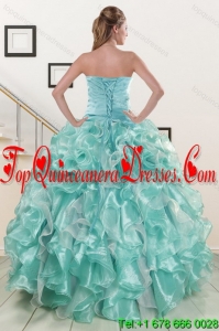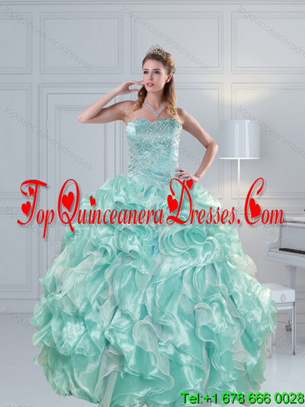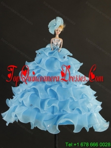 2015 Modern Strapless Beading Quinceanera Dresses in Aqual Blue