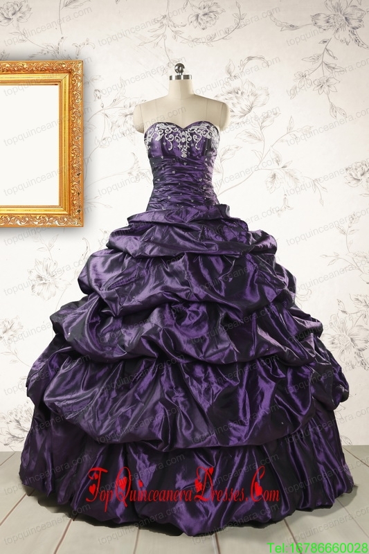2015 Modern Sweetheart Purple Quinceanera Dresses with Appliques