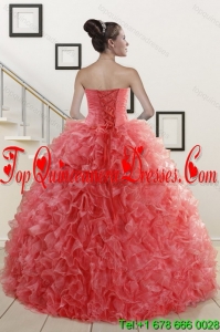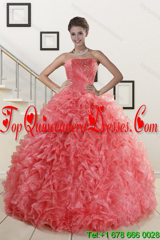 2015 Modern Watermelon Red Quince Dresses with Beading and Ruffles