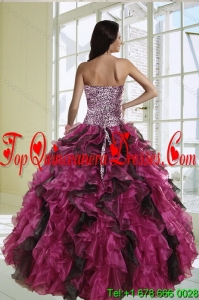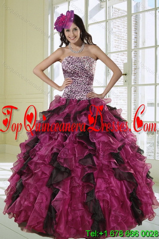 2015 Modest Ball Gown Dress for Quinceanera with Leopard Print
