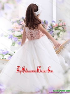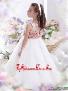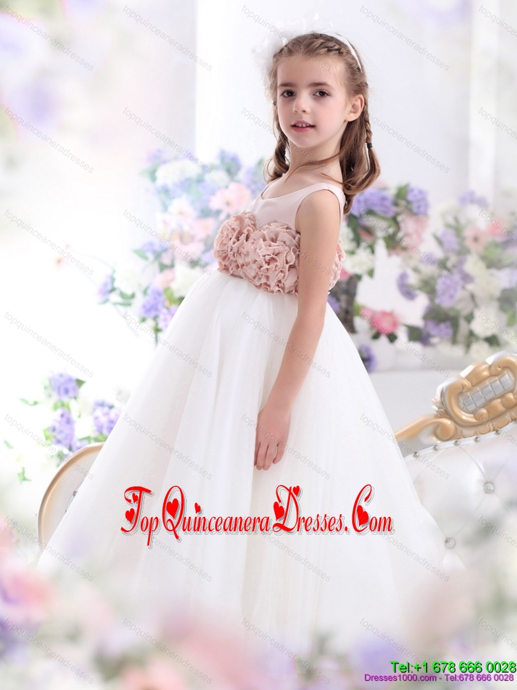 2015 New Arrival Scoop Little Girl Pageant Dress with Hand Made Flowers