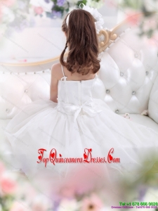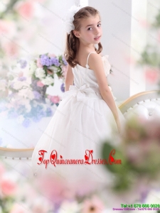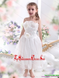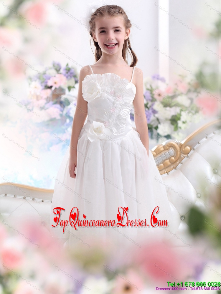 2015 New Arrival White Spaghetti Straps Little Girl Pageant Dresses with Flowers and Ruffles