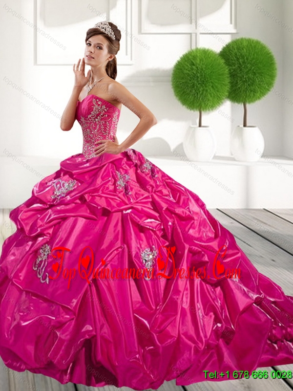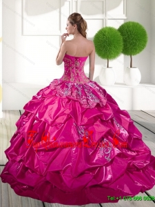 2015 New Style Appliques and Pick Ups Quinceanera Dress in Hot Pink