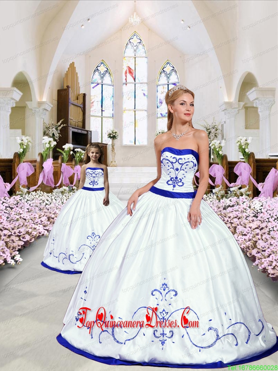 2015 New Style Embroidery Princesita Dress in White and Royal Blue