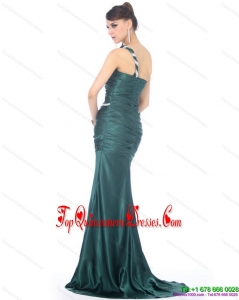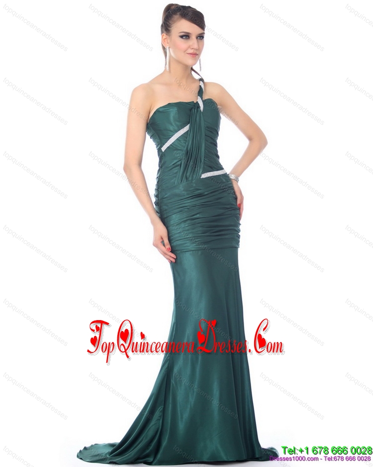 2015 New Style One Shoulde Dama Dress with Ruching and Brush Train