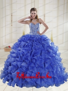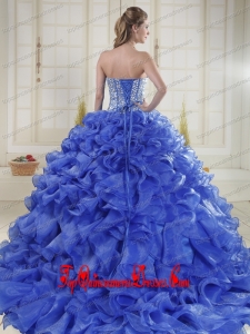 2015 New Style Puffy Sweetheart Brush Train Quinceanera Dresses