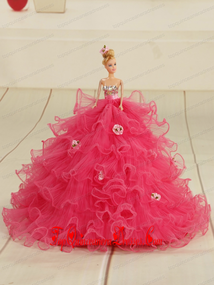 2015 Organza Bowknot Hot Pink Barbie Doll Dress