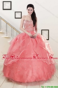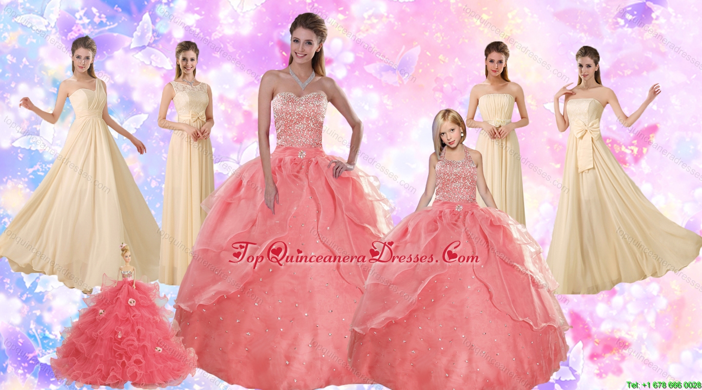2015 Perfect Beading Sweetheart Quinceanera Dress and Ruching Long Prom Dresses and Watermelon Halter Top Little Girl Dress