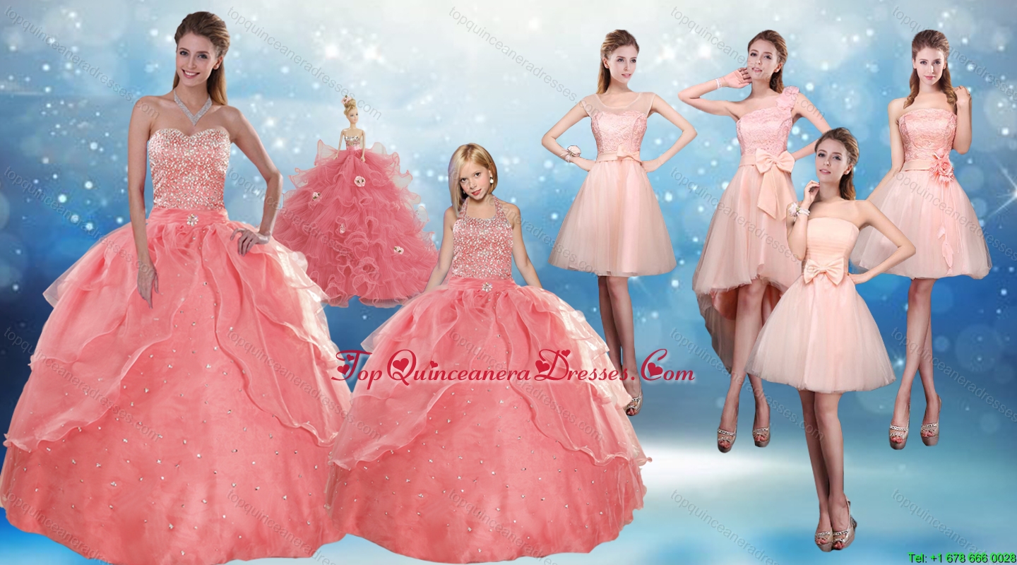 2015 Perfect Sweetheart Beading Quinceanera Dress and Cute Bownot Prom Dresses and Halter Top Watermelon Little Girl Dress