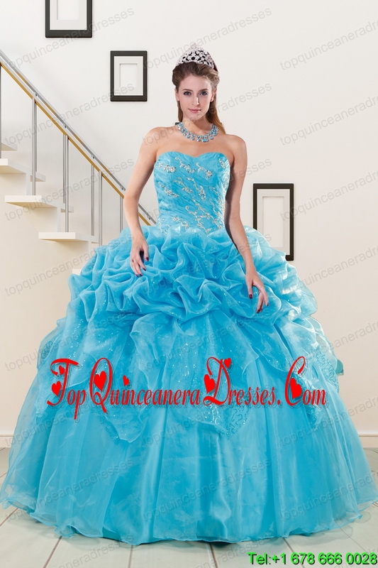 2015 Perfect Sweetheart Beading Quinceanera Dress in Aqua Blue
