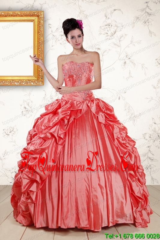 2015 Perfect Sweetheart Beading Quinceanera Dresses in Watermelon