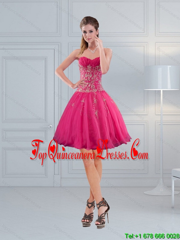 2015 Perfect Sweetheart Hot Pink Dama Dresses with Embroidery and Beading