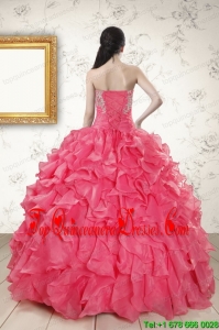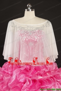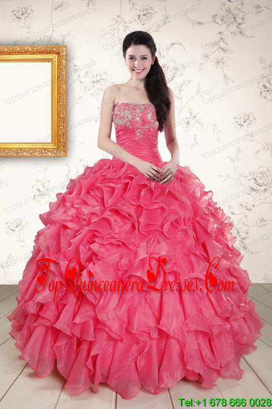 2015 Popular Hot Pink Strapless Quinceanera Dresses with Beading and Ruffles