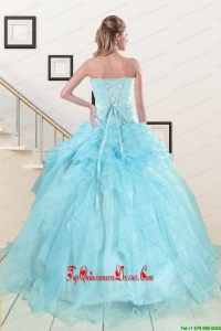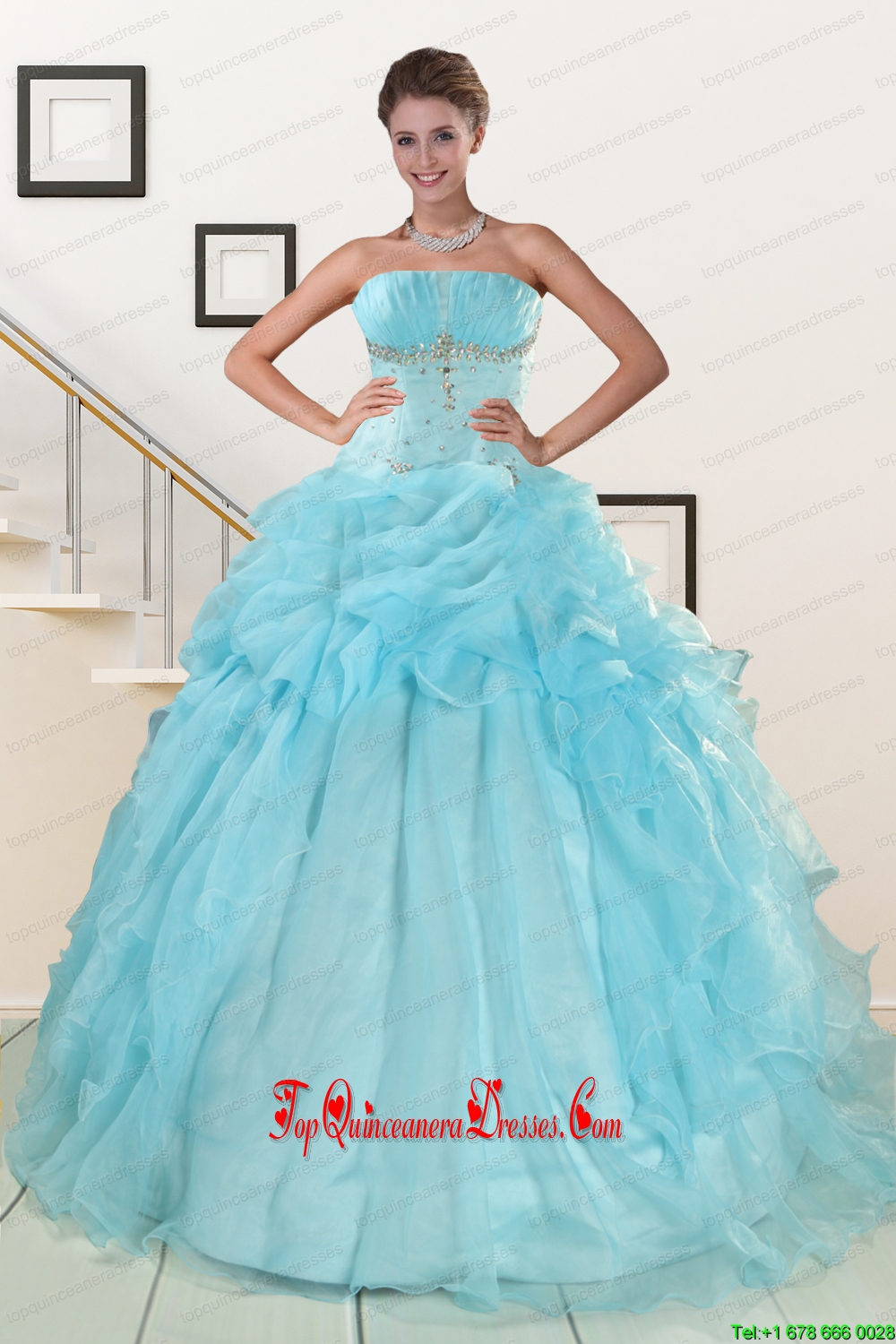 2015 Pretty Aqua Blue Quinceanera Dresses with Beading