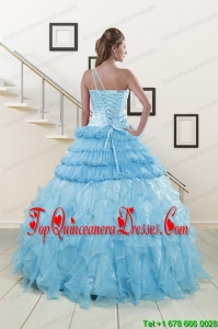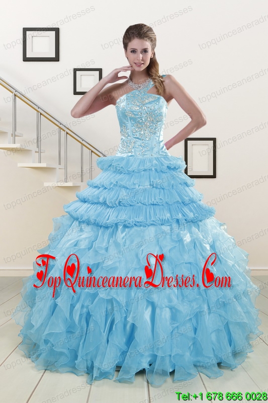 2015 Pretty Baby Blue Sweet 15 Dresses with Beading