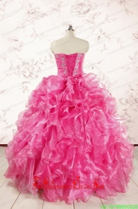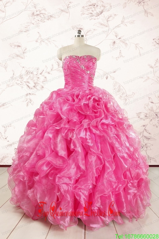 2015 Pretty Hot Pink Quinceanera Dresses with Appliques and Ruffles
