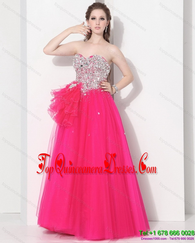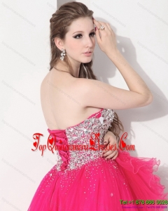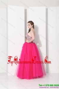 2015 Pretty Hot Pink Sweet Sixteen Dresses with Rhinestones