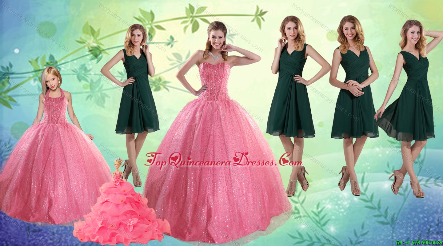 2015 Pretty Rose Pink Quinceanera Dress and Knee Length Dama Dresses and Sweet Ball Gown Little Girl Dress