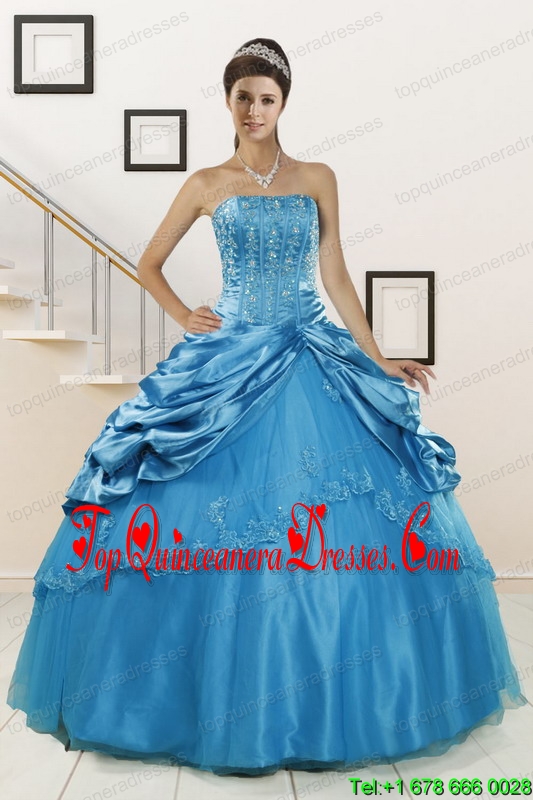 2015 Pretty Spring Wonderful Strapless Appliques Quinceanera Dresses in Teal