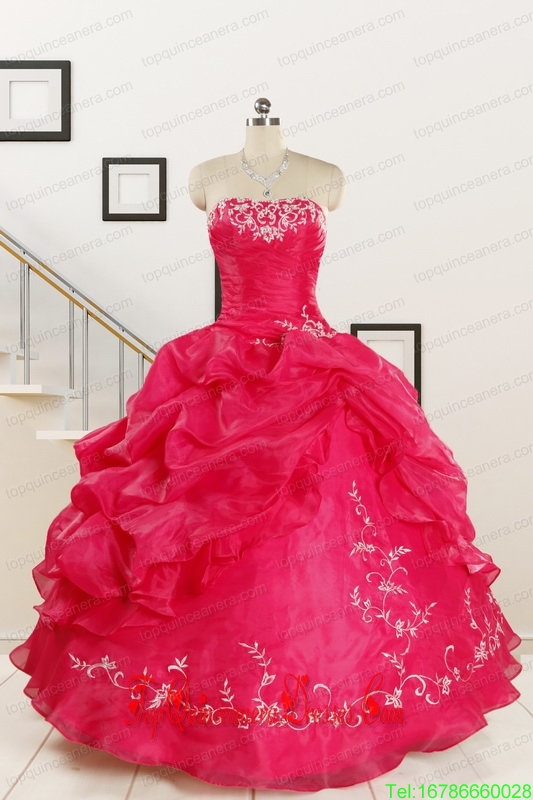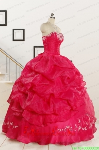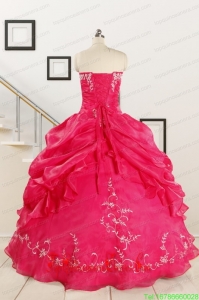 2015 Pretty Sweetheart Embroidery Quinceanera Dress in Hot Pink