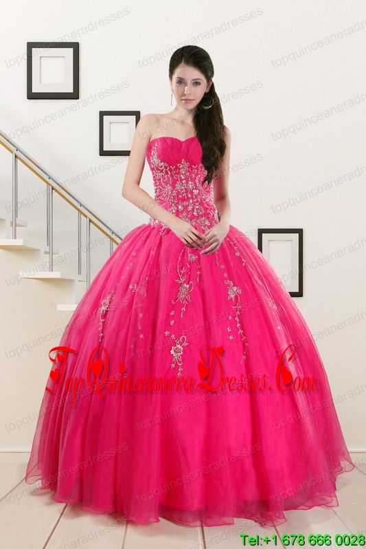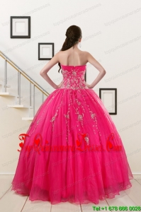 2015 Pretty Sweetheart Hot Pink Quinceanera Dresses with Beading