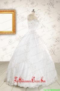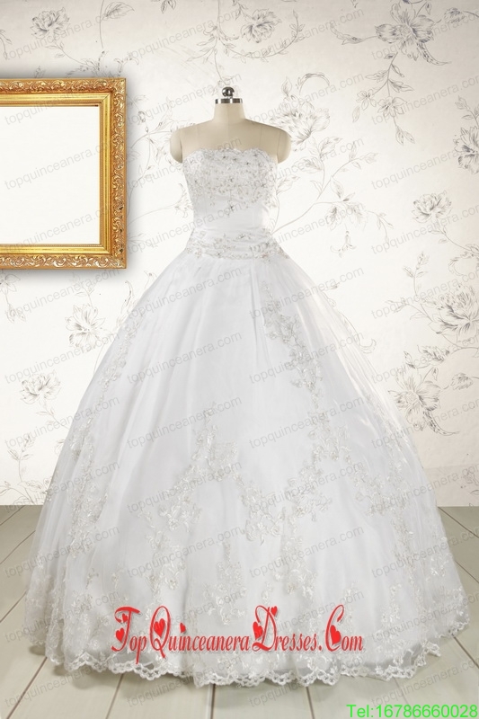 2015 Puffy Appliques Quinceanera Dress in White