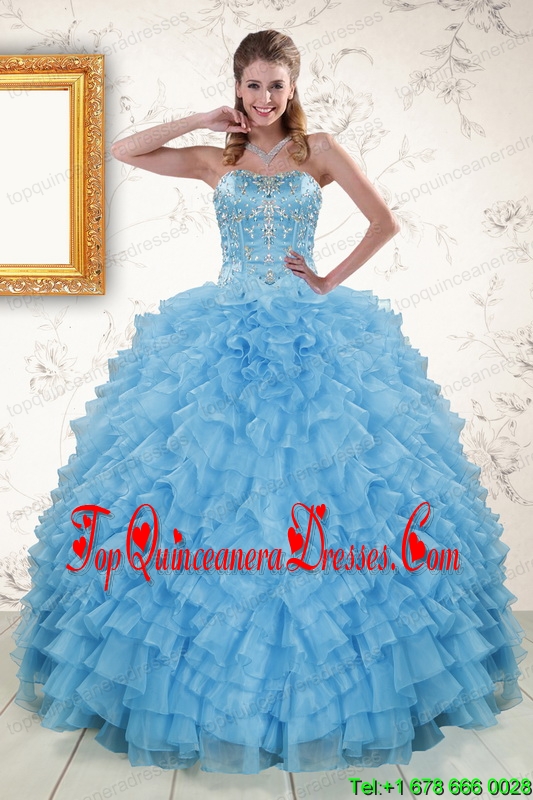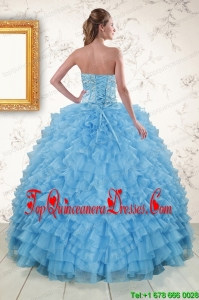2015 Puffy Sweetheart Baby Blue Sweet 15 Dresses with Beading