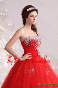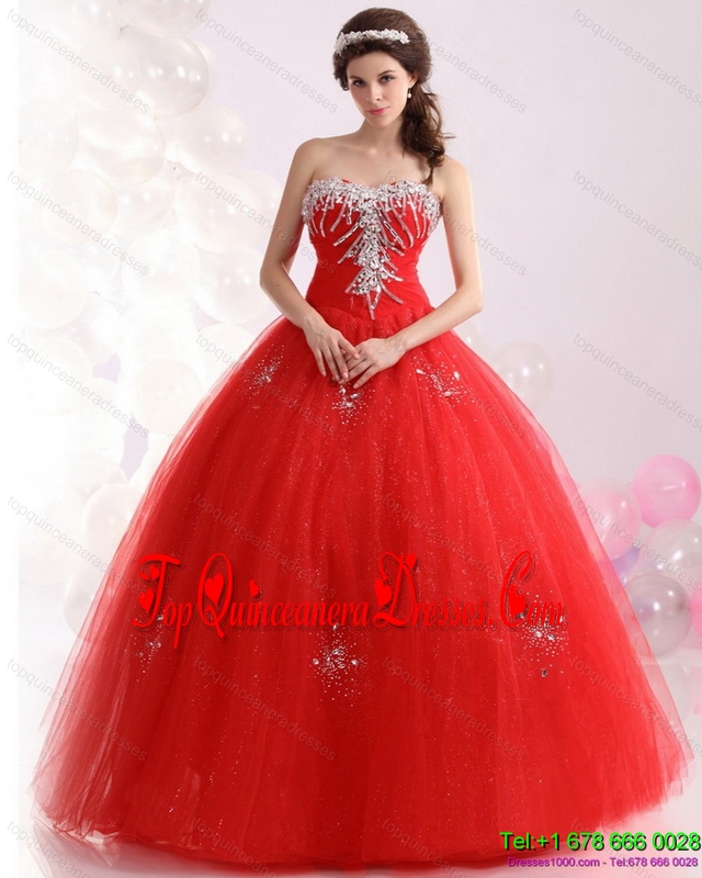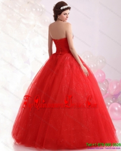 2015 Puffy Sweetheart Red Sweet Sixteen Dresses with Rhinestones