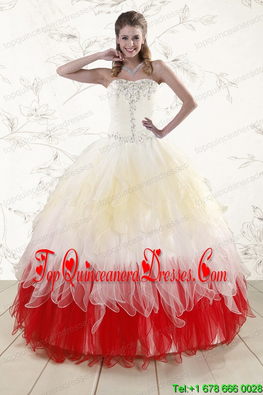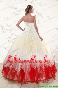 2015 Puffy Sweetheart Ruffled Quinceanera Dresses with Beading