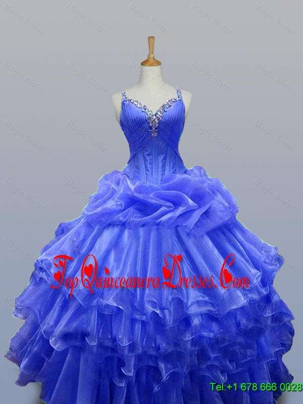 2015 Real Sample Straps Quinceanera Gowns with Beading in Organza