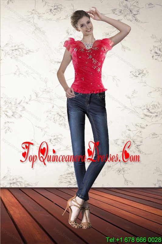 2015 Red Beaded Sweetheart Corset with Ruffled Layers