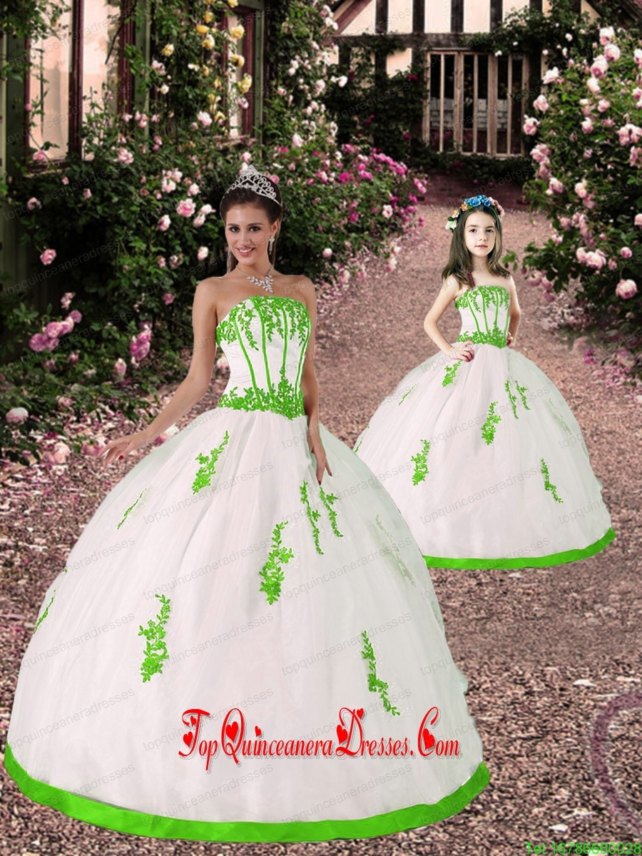 2015 Spring Appliques Princesita Dress in White and Spring Green