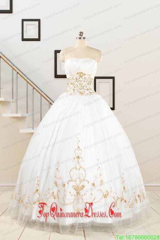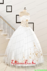 2015 Spring Sweet Beading White Quinceanera Dresses