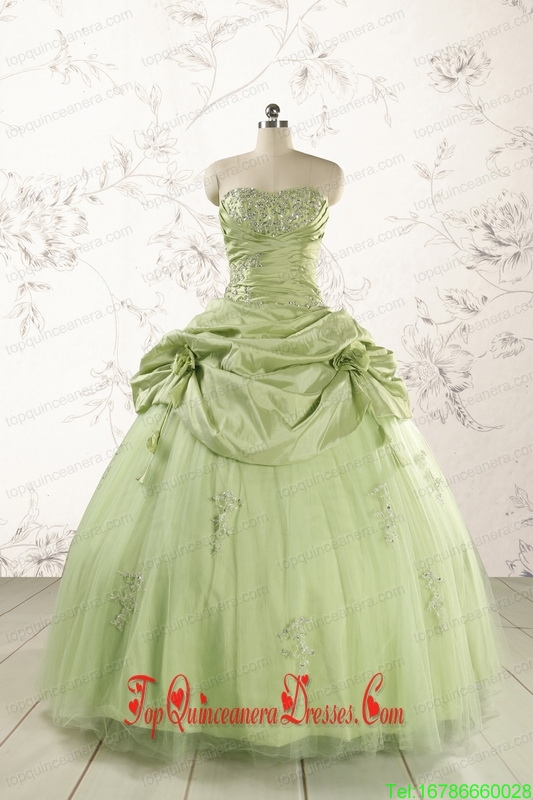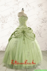 2015 Sweetheart Beading Quinceanera Dress in Yellow Green