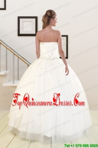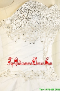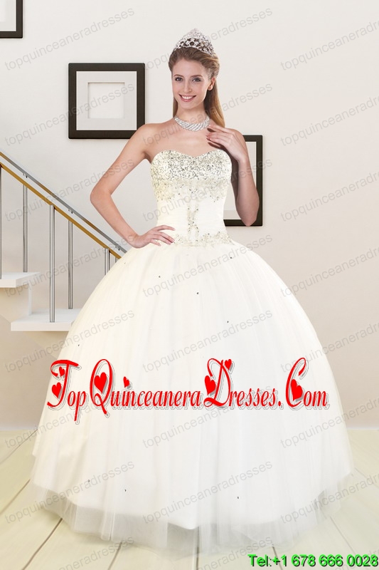 2015 Sweetheart White Puffy Quinceanera Dresses with Beading