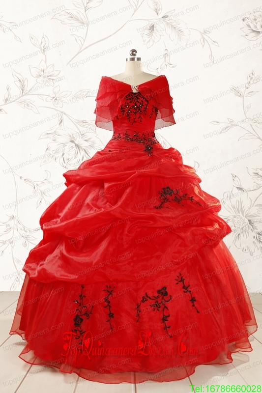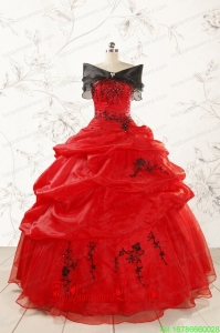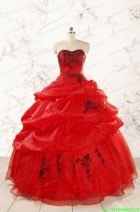 2015 Top Seller Sweetheart Appliques Quinceanera Dress in Red