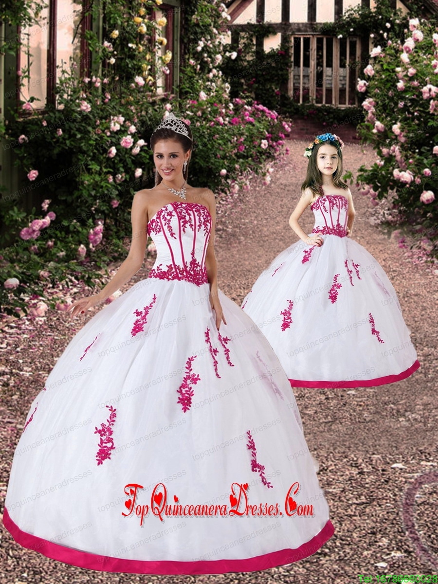 2015 Unique Satin and Organza Appliques White and Hot Pink Princesita Dress