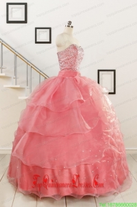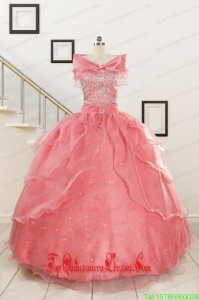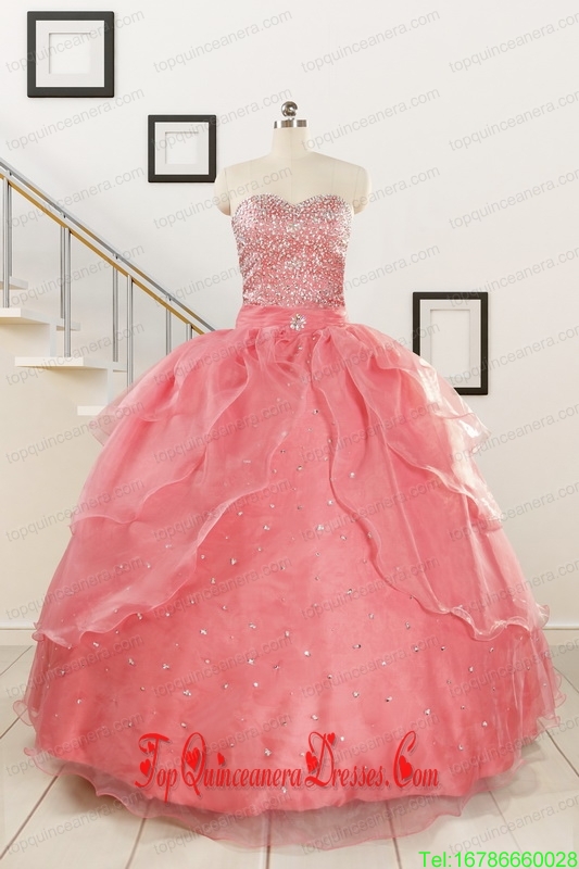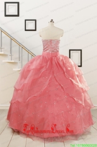 2015 Watermelon Sweetheart Beading Appliques Ball Gown Sweet 16 Dresses